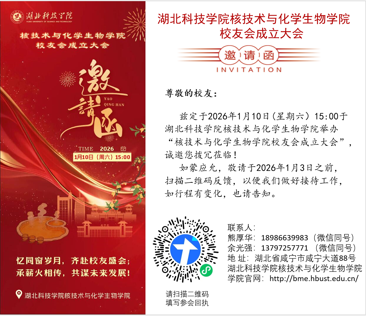 (一)2026年1月10日(周六)15:00-15:30,校友会筹备委员会主任朱晓明,介绍湖北科技威廉希尔官方网站威廉希尔官方网站历史原革及发展情况;